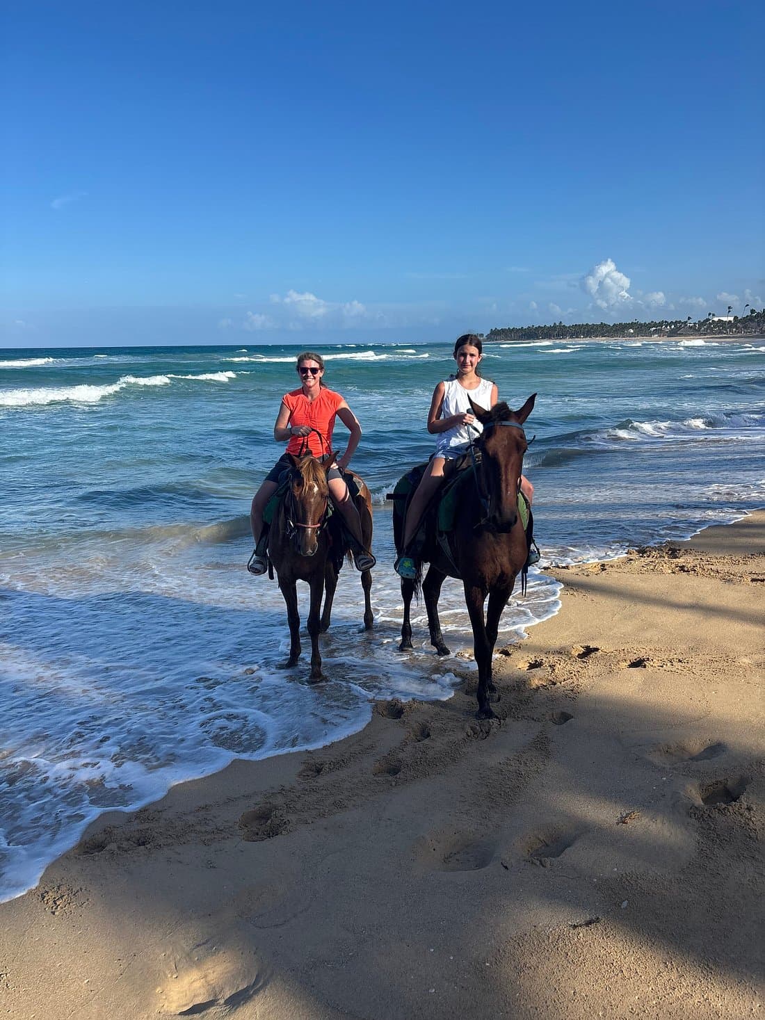 Es un inolvidable paseo a caballo por las hermosas y paradisíacas playas de Punta Cana. El viaje es muy relajante y romántico divertido. ¡Monta a caballo con seguridad en la orilla del mar y siente la brisa del mar en tu rostro! En compañía de tu grupo, en el recorrido, veremos los cocoteros y palmeras y una exuberante vegetación que tu guía te explicará detalladamente. A lo largo de nuestro recorrido llegaremos a la desembocadura del río Maimón, un verdadero espéculo para ver el caudal del río desembocando en el océano. Durante este recorrido, tendrá la oportunidad de galopar, trotar y realizar una serie de pequeñas actividades, como tomar fotos, grabar videos y disfrutar del agua de coco. Simplemente inolvidable.