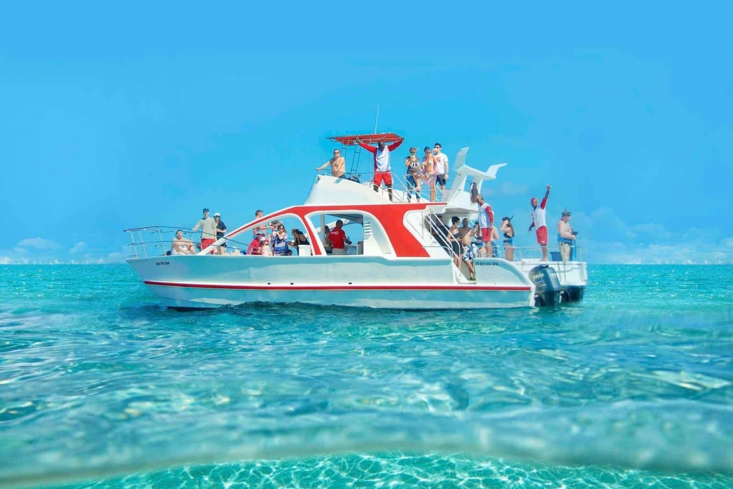 Embárcate en una increíble aventura a bordo de nuestro Party Boat en Punta Cana, donde la diversión y la naturaleza se unen en una sola excursión. Comenzamos el día navegando por las impresionantes aguas del Caribe, disfrutando de música, bebidas y buen ambiente. Nuestra primera parada será en una zona de snorkel, donde te sumergirás en el mundo submarino lleno de vida marina y coloridos arrecifes de coral. Equipado con todo lo necesario, podrás explorar este paraíso marino mientras te maravillas con los peces tropicales que habitan la zona. Después, seguimos hacia una piscina natural, una zona de aguas poco profundas y cristalinas en medio del mar. Aquí podrás relajarte, flotar y disfrutar del paisaje caribeño mientras compartes momentos especiales con amigos o familiares. La música sigue sonando, las bebidas fluyen y el ambiente festivo nunca decae. Esta excursión es perfecta para quienes buscan un equilibrio entre aventura, relajación y pura diversión en un entorno paradisíaco. ¡No te lo pierdas!
